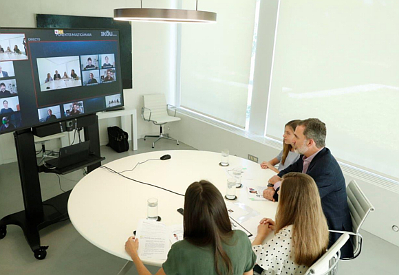 Los Reyes y sus hijas han participado en una videoconferencia con los premiados y responsables de los Premios Fundación Princesa de Girona de este año.