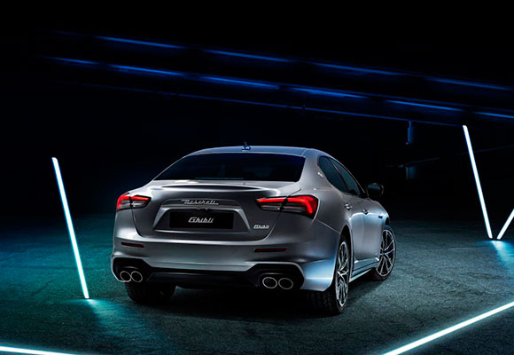 El nuevo Ghibli Hybrid también presenta nuevos contenidos estilísticos, como la nueva parrilla frontal, con barras rediseñadas para representar un diapasón, un dispositivo musical que emite un sonido de extrema pureza y que también evoca el símbolo del Tridente. También hay cambios significativos en la parte trasera del automóvil. Los grupos de luces se han rediseñado por completo, ahora presentan un perfil tipo boomerang, inspirado en el 3200 GT y el concept car Alfieri.