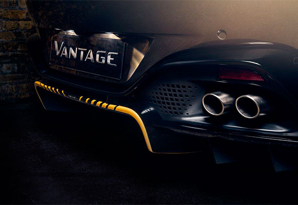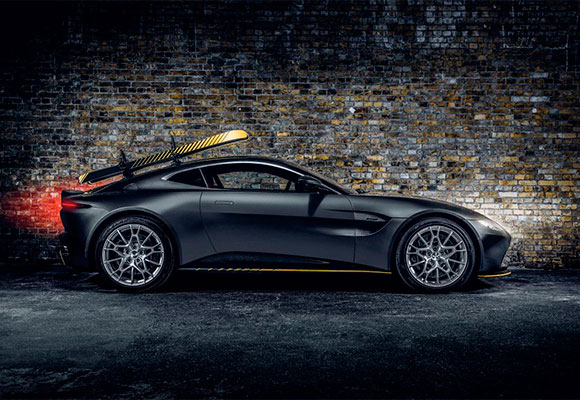 Basado en el formidable estilo deportivo y el desempeño agresivo del Vantage normal, el nuevo automóvil presenta tratamientos de estilo exterior únicos con una rejilla de malla a medida con bisel cromado, que hace referencia al aspecto del clásico V8 de la casa a la cabeza. Otros detalles del diseño incluyen un difusor amarillo discontinuo, inspirado en las franjas de peligro que se pueden ver en los cohetes del coche de la película.