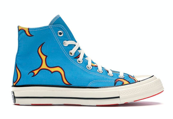 Uno de los lanzamientos más apoyados por los amantes de la silueta fue el modelo “Flames”, que combina de manera sencilla el azul de la base del par con unas llamas que aparecen distribuidas a lo largo de toda la zapatilla. Su salida tuvo lugar el año pasado, donde arrasó por completo en todas las tiendas. Debido a esto su precio en el mercado de reventa asciende a los 300 euros.