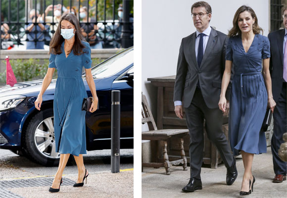 La semana pasada hablábamos de las cuatro claves de su éxito. Una de ellas es sacar partido a su extenso ropero y repetir outfits con los que se siente especialmente cómoda. En su último acto oficial del pasado viernes volvimos a verla con un elegante vestido azul de Bottega Veneta que estrenó hace dos años en la capital gallega. Igual que éste, vamos a repasar algunos de los looks repetidos de Letizia más famosos y llamativos.