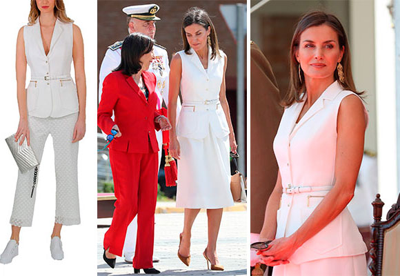 El chaleco/chaqueta balnco de Letizia lo puedes comprar por 148 euros