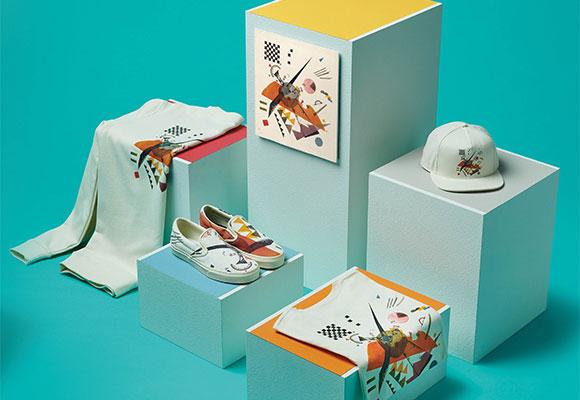 El arte abstracto de Kandinsky va a ser uno de los grandes protagonistas de la colección. En concreto su obra Orange 1923, un grabado que el artista realizó cuando era profesor en la escuela de arte y diseño de la Bauhaus alemana. La huella de Kandinsky la vamos a poder llevar en una camiseta, una gorra y la silueta sin cordones Classic Slip-On de Vans.