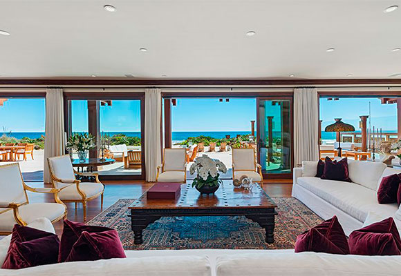 La casa posee una sala de estar con vistas al mar, previo paso de las terrazas mentadas, una cocina gourmet de mármol con amplios ventanales y comunicación con el exterior mediante puertas correderas de piso a techo, y un generoso comedor. A la planta superior, una escalera de teca conduce a una increíble suite principal de 370 metros cuadrados ¡¡Sí!! ¡Has leído bien!, una cantidad de metros que permite balcón privado, dos vestidores, dos baños y un estudio de arte.
