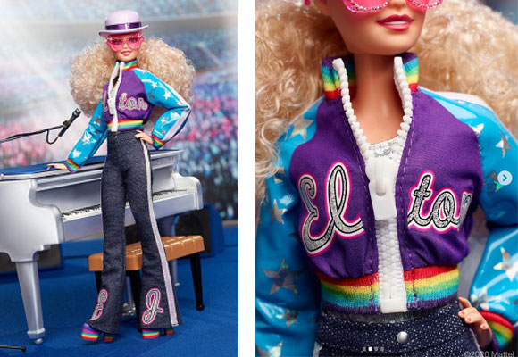 Disponible de momento en los almacenes de la cadena Walmart y en la web de Mattel, la muñeca de 12 pulgadas diseñada por Caroline DeMersseman puede adquirirse por 50 dólares. Ésta asume la personalidad completa del artista y cuenta con una chaqueta estilo bomber con detalles arcoíris y pantalones acampanados con las iniciales “E” y “J” estampadas en la parte delantera de cada pierna, respectivamente.