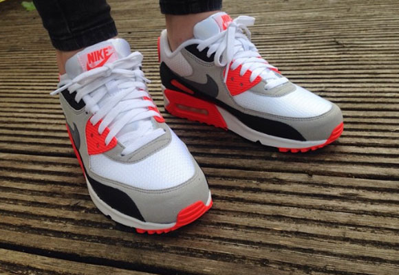 Finalmente, en 1990 se lanzaron varios modelos de la Air Max 90, siendo el más destacado el llamado ‘Infrared‘. En el básico diseño, la silueta se viste de cuatro principales colores: blanco como base, negro para resaltar las demás tonalidades, gris y rojo infrared, que actúa como protagonista.