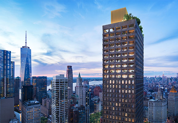 Adjaye se inspiró para crear un edificio que abraza la historia de la arquitectura de mampostería de Nueva York. Cuenta con una fachada personalizada hecha a mano con refinados detalles en bronce. Se trata de una interpretación contemporánea de la mampostería que caracterizó la arquitectura clásica de Manhattan. Otra característica de la firma es la silueta de ventanas arqueadas de gran escala que se inspiran en los amados lofts que una vez poblaron esa área.