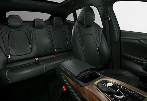Esta edición especial de DBX incluye incrustaciones de mármol gris Pietra D’Avola, combinadas con madera de nogal satinado. El cuero cosido a mano tradicional de Aston Martin presenta también molduras y volante en Parliament Green del servicio de personalización interno de Aston Martin, “Q by Aston Martin”. Éste combina con las paredes de la opción de la sala del simulador. También dispone de pintura de varias capas en un color personalizado de Q by Aston Martin, inspirado en el exterior de 130 William, con sutiles toques verdes. El interior incluye molduras de nogal macizo tallado, con cuero Q by Aston Martin Parliament Green y detalles en bronce, aluminio anodizado negro y piedra real.