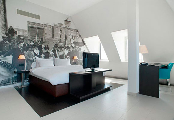 Otra de las particularidades de la obra fue la ejecución de parte del hotel sobre un viaducto. Éste no pudo condenarse totalmente, así que se tuvo que ingeniar un encofrado que sirviera como plataforma de trabajo y, al mismo tiempo, permitiera el tránsito de vehículos (incluyendo bicicletas, el transporte más popular del país). Las habitaciones de hotel poseen numerosas imágenes antiguas que cubren las paredes, haciendo única cada una de ellas. Un recurso muy moderno que casa muy bien con la idiosincrasia del hotel.