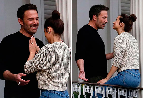 Pero además del beso, lo que más llamado la atención es el anillo de diamantes que Ana de Armas luce en su mano izquierda. Una llamativa joya que la actriz no para de admirar, mientras habla y se ríe con Affleck. Sin embargo, se desconoce si este anillo de compromiso pertenece a la actriz, o forma parte del attrezzo de la película. Lo que sí es cierto es que a Ana de Armas parece gustarle, y mucho.