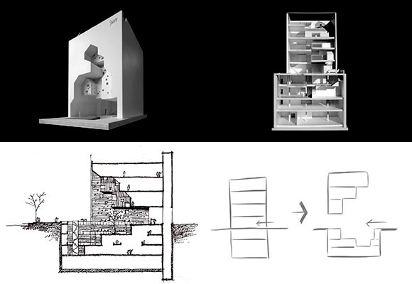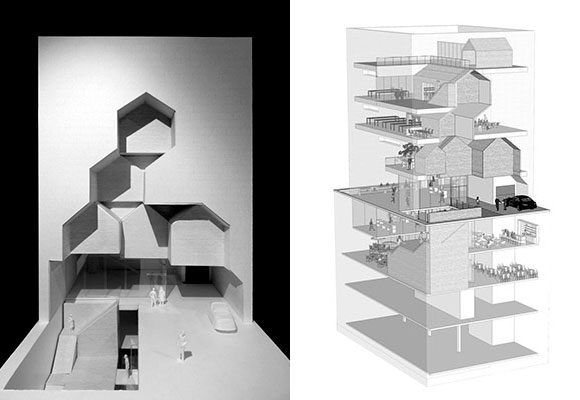 La creatividad es una seña de identidad en arquitectura, como muestra, el centro comercial que os presentamos esta semana, formado a base de casas rehundidas en forma apilada.