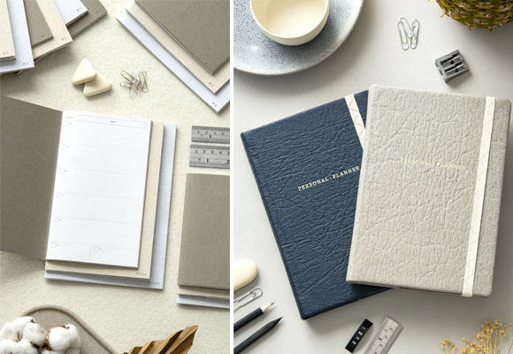 En su portfolio tiene cuadernos, agendas, recetarios y distintos artículos de organización. Todos realizados con materiales biodegradables como el algodón orgánico, el papel reciclado, las botellas PET recicladas o fibras obtenidas de residuos de las industrias alimentarias. Es el caso del llamado Piñatex, un material creado a partir de fibras de hoja de piña, que simula una piel vegana.
