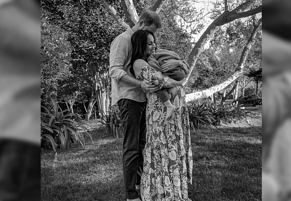Tras la tormenta, la pareja se ha puesto delante del objetivo de la fotógrafa Misan Harriman para compartir su felicidad lejos de la familia real. Imagen en blanco y negro de una embarazada Meghan Markle que sostiene a su hijo Archie en brazos, mientras el príncipe Harry abraza a ambos.