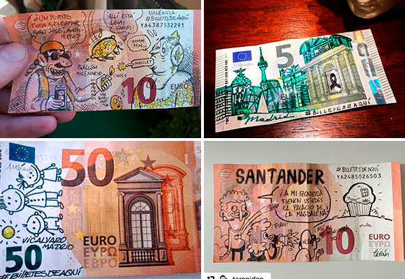 Ya son algunos compañeros como Mercedes Milá, Gonzo o Xabier Euzkitze los que han puesto en movimiento sus billetes locales. De esta forma colaboran en la cadena de billetes customizados para dar visibilidad a nuestros comerciantes locales.