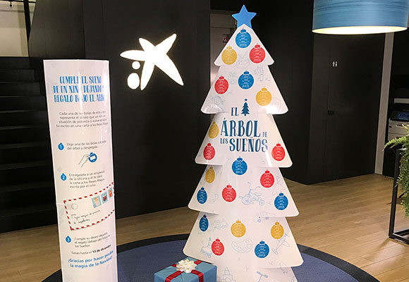 Un año más, CaixaBank, en colaboración con la Obra Social “la Caixa”, planta su Árbol de los Sueños, una iniciativa del programa CaixaProinfancia que tiene como objetivo “acercar la Navidad y dar regalos a cerca de 25.000 niños y niñas que están en riesgo de pobreza o exclusión social”.
