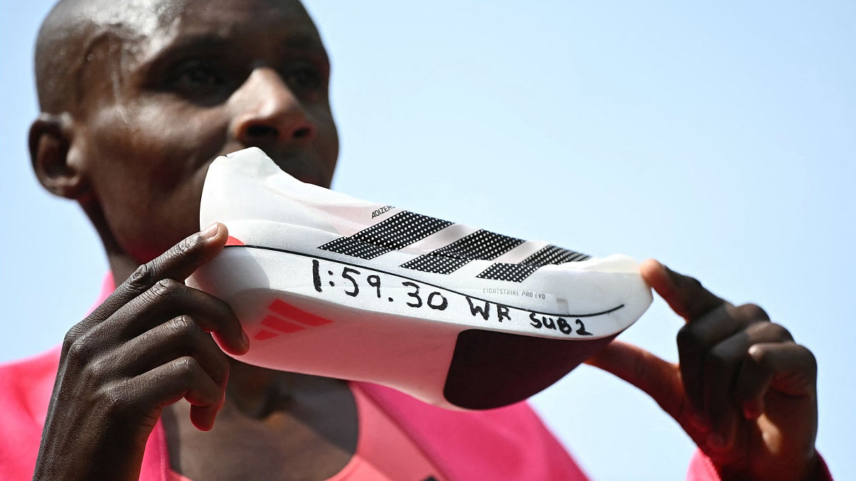 El plusmarquista keniano consiguió su gesta con el único apoyo técnico de unas revolucionarias zapatillas que ya forman parte de la historia del deporte. Se trata de las Adizero Adios Pro Evo 3 desarrolladas por adidas.