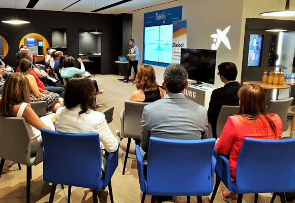 Se trata de una serie de charlas y talleres de interés, impartidas por expertos de primer nivel y abiertas al público de manera gratuita. El formato permite la interacción entre los clientes y los ponentes, ya que se concibe como una propuesta donde los asistentes tienen la posibilidad de dialogar y plantear dudas sobre los temas tratados, en un ambiente cómodo y distendido. Están enfocadas a los diferentes segmentos de clientes, con temáticas diversas, actuales y muy interesantes. Se puede seguir la agenda de charlas a través de los perfiles de Facebook (DialogA CaixaBank) y Twitter (@DialogA_CABK).