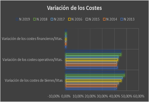 Así, los costes de ventas, se han incrementado, en relación con el año anterior, en un 0,25 %. Solo en el último trimestre, el crecimiento ha sido del 10,92 %. Esto hace que esta partida, en los nueve meses, represente el 47,75 % del total de ventas. Segundo nivel más alto de los últimos seis años, pero por debajo del mismo periodo del año anterior.