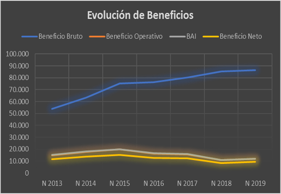 La contención en el crecimiento de los gastos administrativos (+0,46 %) y un crecimiento negativo del resto de los Costes Operativos hacen que el beneficio operativo se situé en un 10,31 % y que el margen operativo crezca 73 p.b. para situarse en el 7,27 %.