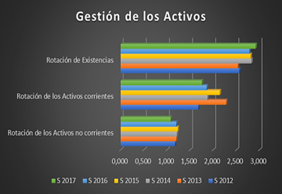 Datos dispares en cuanto a la gestión de los activos. Las caídas de las ratios de rotación de los activos corrientes y no corrientes nos dan una situación de infrautilización de los activos. Si bien un mejor aprovechamiento de las existencias es evidente si observamos el crecimiento del ratio de existencias y la disminución de sus plazos.