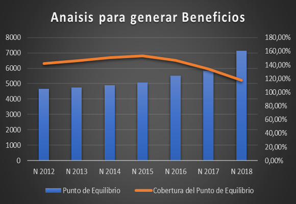 • En cuanto al punto de equilibrio, como podemos observar, su subida hace plantearse la necesidad de si las ventas no crecen al mismo ritmo, de un esfuerzo para mantener una política restrictiva en los gastos, incrementando las medidas para su consecución.