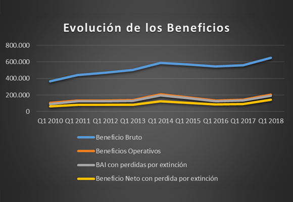 El Beneficio Neto, debido a la reforma fiscal de Trump, ha sido de 142.300 miles, lo que supone un incremento respecto al mismo periodo del año anterior del 53,18%. El Margen neto se sitúa en el 13,77%, muy por encima de mis expectativas del 12,50%.