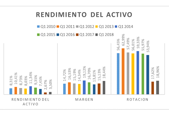 En cuanto a los Ratios de Gestión de Activos, como podemos ver en el siguiente gráfico, nos dan muestras de una mejora en la utilización de los activos no corrientes y, en menor medida, de los activos corrientes e inventarios.