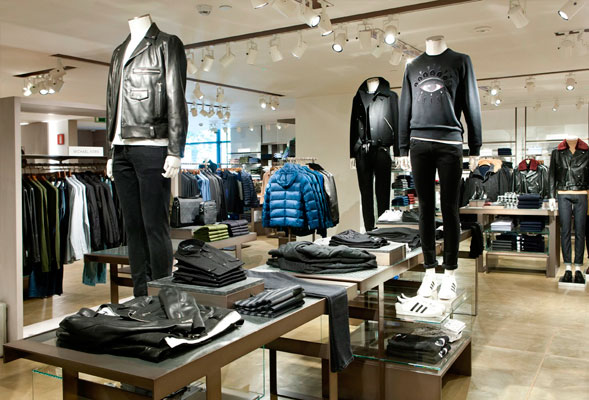 Entre las firmas se encuentran Balenciaga, Dior Homme, Alexander McQueen, Tom Ford, Isaia, Lanvin y Valentino. Las últimas dos plantas cuentan con oferta gastronómica que durante los fines de semana generan colas entre el público gourmet.