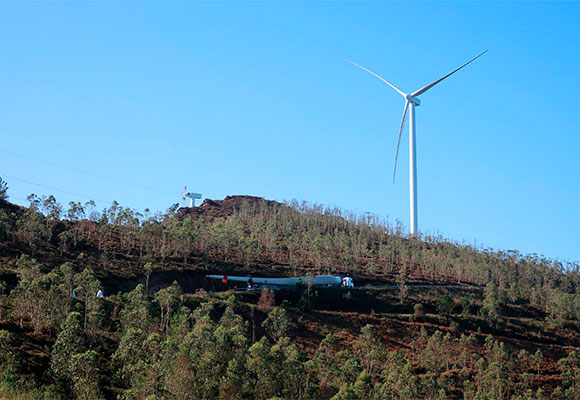 A 800 metros de altitud, y en una zona con constantes cambios meteorológicos, se levantan ya aerogeneradores de grandes dimensiones. Esto supone palas de 56 m de longitud, nacelles de 126 toneladas de peso y torres de entre 80 y 93 metros de altura.