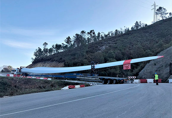 Para alcanzar la cota de los parques, los materiales -torres, nacelles y palas, entre otros- son transportados por angostos caminos de un solo acceso y con numerosas pendientes y curvas de hasta casi 180º. Esta actividad ha requerido de una exhaustiva planificación para evitar condicionar los trabajos previstos y hacer posible la llegada de hasta 200 transportes diarios con diferentes materiales.