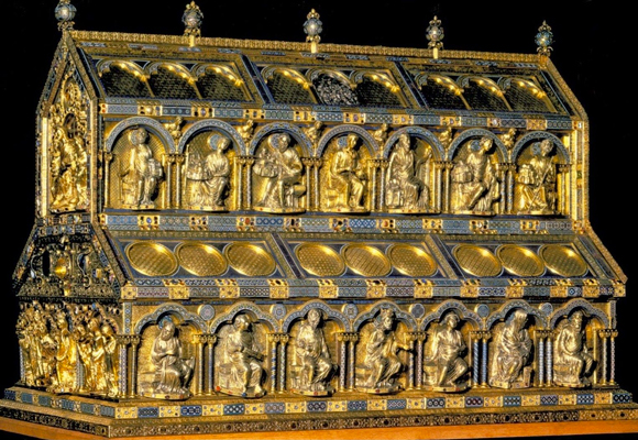 Cuando nos estaban disponiendo en formación bajo los rigores del protocolo y de la Canciller Merkel en la Seo, recibí un mensaje en mi móvil: “Por si no lo sabes, en la Catedral de Colonia está el relicario más grande del mundo occidental que contiene los huesos de los tres Reyes Magos”. Mi niño interior se sintió definitivamente injuriado, y mientras retumbaba la voz del Obispo entre las bóvedas de la parroquia, pensé en reliquias y relicarios, como he vuelto a pensar ahora. Porque el primer caso documentado de veneración cristiana de reliquias es el San Policarpo, quemado en la hoguera como San Lorenzo, en el año 155. ¡Qué casualidad! ¡Cómo el artículo 155!