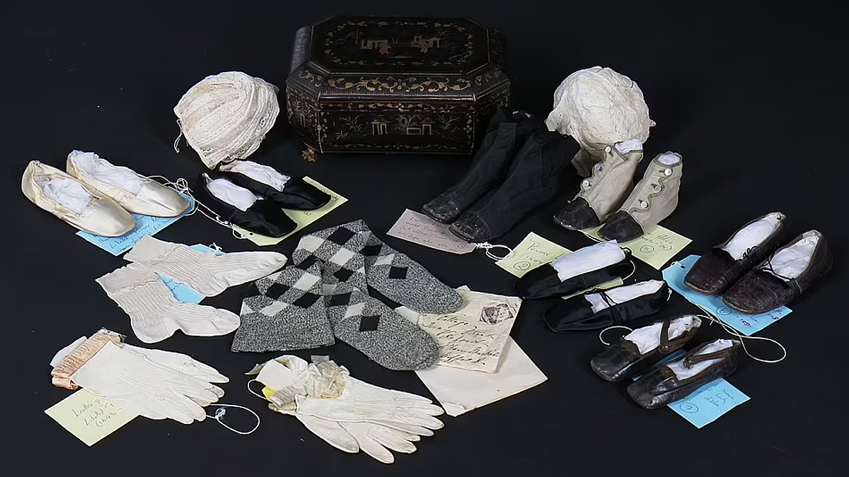 Prendas que pertenecieron a miembros de la alta sociedad y que se han conservado de generación en generación. Es el caso del lote más curioso de toda la subasta. El que incluye prendas de que alguna vez usaron los hijos de la reina Victoria. Fueron guardadas por una de las niñeras, la Sra. Thurston, y heredados por su familia. Thurston trabajó para la familia real durante 22 años hasta 1867. El lote incluye medias, pequeños zapatos, guantes y calcetines que datan de la década de 1840. Las ganancias de este lote, por el que se espera conseguir hasta 3.000 libras, se destinarán a una sociedad de apoyo a personas con Alzheimer.
