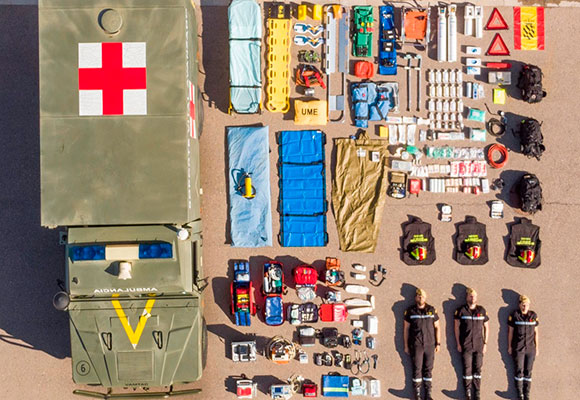 En un orden escrupuloso y sustituyendo los clicks por personas reales, las redes se han llenado de fotografías que muestran los cuerpos de seguridad en ese particular de bodegón, emulando a las piezas de mecano en orden, antes de proceder al montaje. Cada una de las fotos refleja una minuciosidad y diversión en la creación de la estampa que busca un efecto trampantojo en los espectadores de “realidad o juguete”.