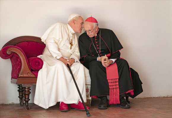 Basado en una obra de teatro homónima de Anthony McCarten, Dos Papas respondió muy bien en su empeño para dejar de buen humor al espectador, en lugar de ofrecer una visión más profunda de un momento clave dentro de la historia de la religión católica. La película se apoyó casi totalmente en las interpretaciones de Anthony Hopkins (Joseph Ratzinger) y Jonathan Pryce (como el Papa Francisco). De largo, lo más estimulante de la película.
