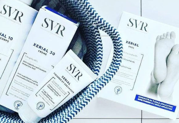 La firma cosmética SVR cuenta con la línea de cuidado para pies Xerial que incluye una mascarilla en forma de calcetín de un solo uso super efectiva.