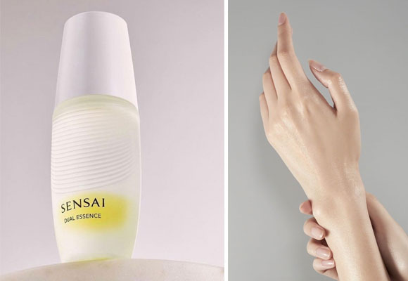El Dual Essence es el primer elixir bifásico de Sensai. Es un cuidado en esencia para aportar más nutrientes y luminosidad al rostro. Y es que ayuda a estimular la síntesis del ácido hialurónico, afinar líneas y aportar elasticidad a la piel. Compuesto por tres partes de  aceite y una de esencia, su secreto radica en agitarlo bien para que la mezcla se integre y penetre bien en la piel.