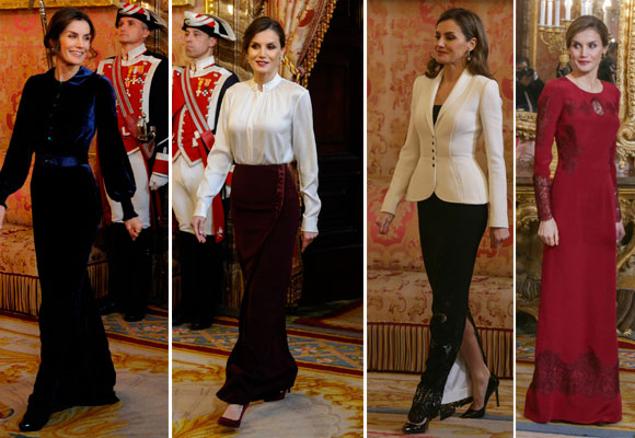 Diseños de Varela para las últimas recepciones de doña Letizia. Fotos: Gtres