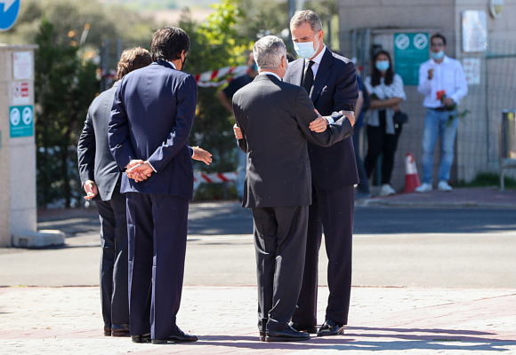 El rey Felipe VI se ha acercado hasta el Tanatorio de La Paz, en Tres Cantos, para dar el pésame a los familiares de su amigo Jaime Carvajal Hoyos.