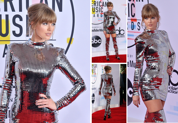 Taylor Swift se vistió de discoteca humana y apostó por un diseño de Balmain que bien podría haber llevado Miley Cyrus en su época más rebelde. Resplandor y centellas desde las botas hasta el cuello en definitiva para una artista que arrasó en la entrega de premios con tres galardones, igualando los premios obtenidos en su día por la eterna Whitney Houston. Como su vestido… de otro planeta.