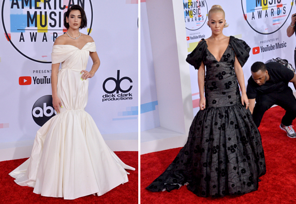 Dos de las artistas más incipientes del panorama musical, Dua Lipa y Rita Ora se decidieron por vestidos con faldas amplias pero muy diferentes. Dua Lipa confió su estilo a Giambattista Valli y apostó por el blanco con una creación de aire nupcial que adornó con las uñas pintadas en amarillo. Rita Ora, a la que hace unos días la veíamos con un vestido multicolor, escogió una propuesta gris con estampado floral de Giambattista Valli.