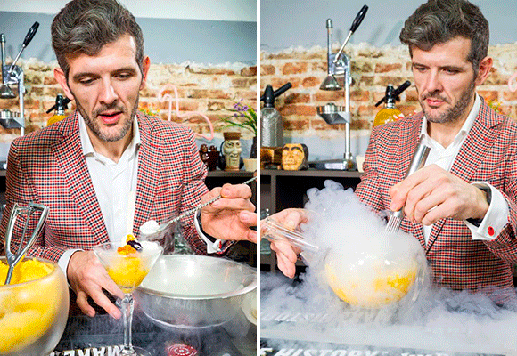 - Antonio Aranda: Comencé como ayudante de cocina. Rápidamente me pasaron a sala y en 2005 empecé a elaborar cócteles en las coctelerías de diseño de Chueca. En 2008 el equipo de Larios me ofreció la posibilidad de ser embajador de marca y hasta ahora.