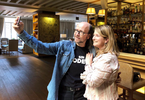 SS: Es verdad, lo soy… aunque la gente crea lo contrario. Soy sensible, pero me protejo. Ver como reaccionaba la gente en esa proyección, interactuando con la pantalla, riendo los chistes, empatizando con el gatito, gritándole a Maribel que le diera duro al jefe… ¡Fue increíble! Me sentí como cuando era niño y veía los guiñoles, que les avisabas de que venía el lobo cuando le veías aparecer por detrás. En un mundo en el que uno no deja ni un segundo el móvil para mandar whatsapps, que haya una sala llena de gente que se mete en una historia durante noventa minutos y la vive hasta el punto de interactuar es… Yo estoy feliz, muy feliz.