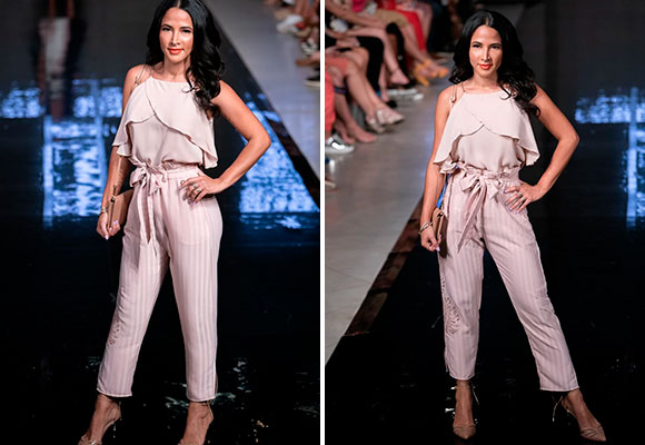 La productora y modelo Daniela Talabante desfilando para la célebre casa de moda brasileña Carmen Steffens en el Art Hearts Fashion show de la Semana de la moda de Nueva York 2019. Fotógrafo: Tone Def Visuals