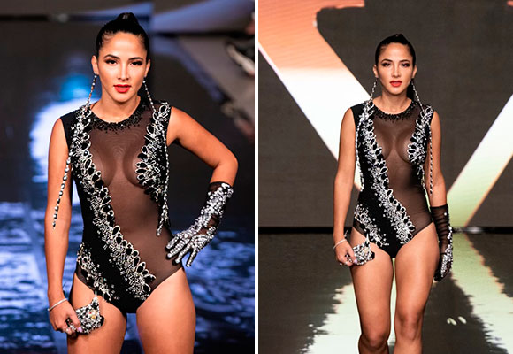 Daniela Talabante desfilando en el Miami Swim Week de 2019 con un traje de baño del diseñador Antonio Chávez. Fotógtafo: Auc Photography, Art Hearts Fashion