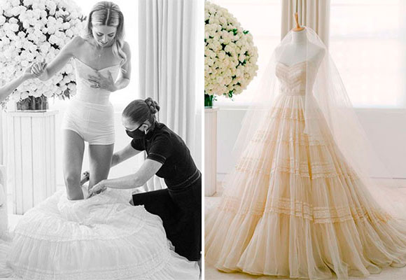con bordados, todo ello en un color marfil avainillado (Fotos: @vogueweddings y @ktmerry Instagram)