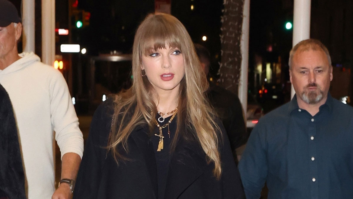Como suele ser habitual, Taylor Swift escogió para su salida con amigas un total look de marcas de lujo. El claro protagonista era un chaquetón corto de paño en color negro de la firma Auter, valorado en 1.450 dólares, que combinó con una minifalda plisada en color gris y unas llamativas botas de piel de serpiente.