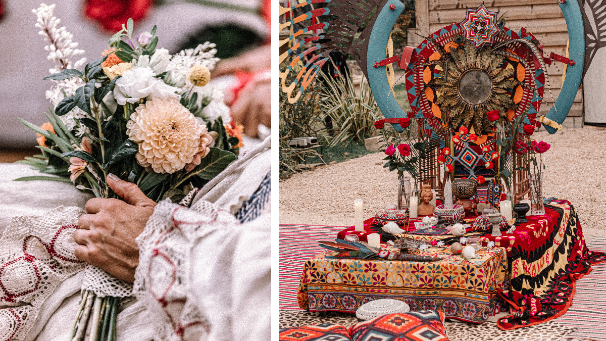 Los cuatro elementos -el fuego, la tierra, el agua y el aire- fueron el hilo conductor de la ceremonia. Un ritual casi mágico que los consagró bajo las cuatro direcciones -norte, sur, este y oeste- para manifestar el amor y la naturaleza creando una conexión vital. El enlace estuvo oficiado por los maestros de ceremonias y amigos de la familia, John Michell y María Chilena, quienes condujeron este rito único y alejado de todo convencionalismo.