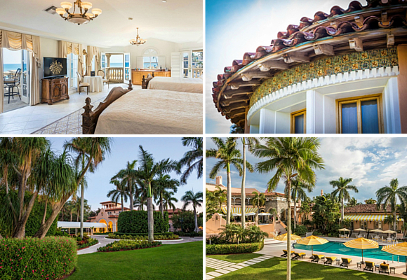 La finca Mar-a-Lago fue inaugurada oficialmente en enero de 1927, después de cuatro años de construcción. Su primera propietaria e impulsora fue Marjorie Merriweather Post. La casa principal es una adaptación del estilo hispano-morisco, muy popular entre las villas del Mediterráneo. Una estructura resistente a huracanes y que está anclada a un arrecife de coral. Para su construcción, se trajeron tres barcos cargados de piedra doria desde Génova, Italia. La propietaria puso especial atención en el adorno de paredes y suelos. Se utilizaron para ello azulejos españoles antiguos traídos de todas partes. Los hay hasta del siglo XV. Cuentan desde el propio club que “la organización Trump ha invertido millones de dólares en restaurar y mejorar esta joya de Palm Beach. Creando en última instancia la mejor experiencia en lujo, relajación, gastronomía, entretenimiento y recreación de clase mundial, todo en un entorno incomparable”.