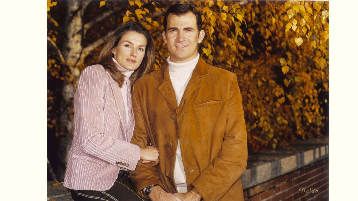 Jóvenes, compenetrados y muy otoñales posaron los entonces príncipes de Asturias apenas siete meses después de su boda.