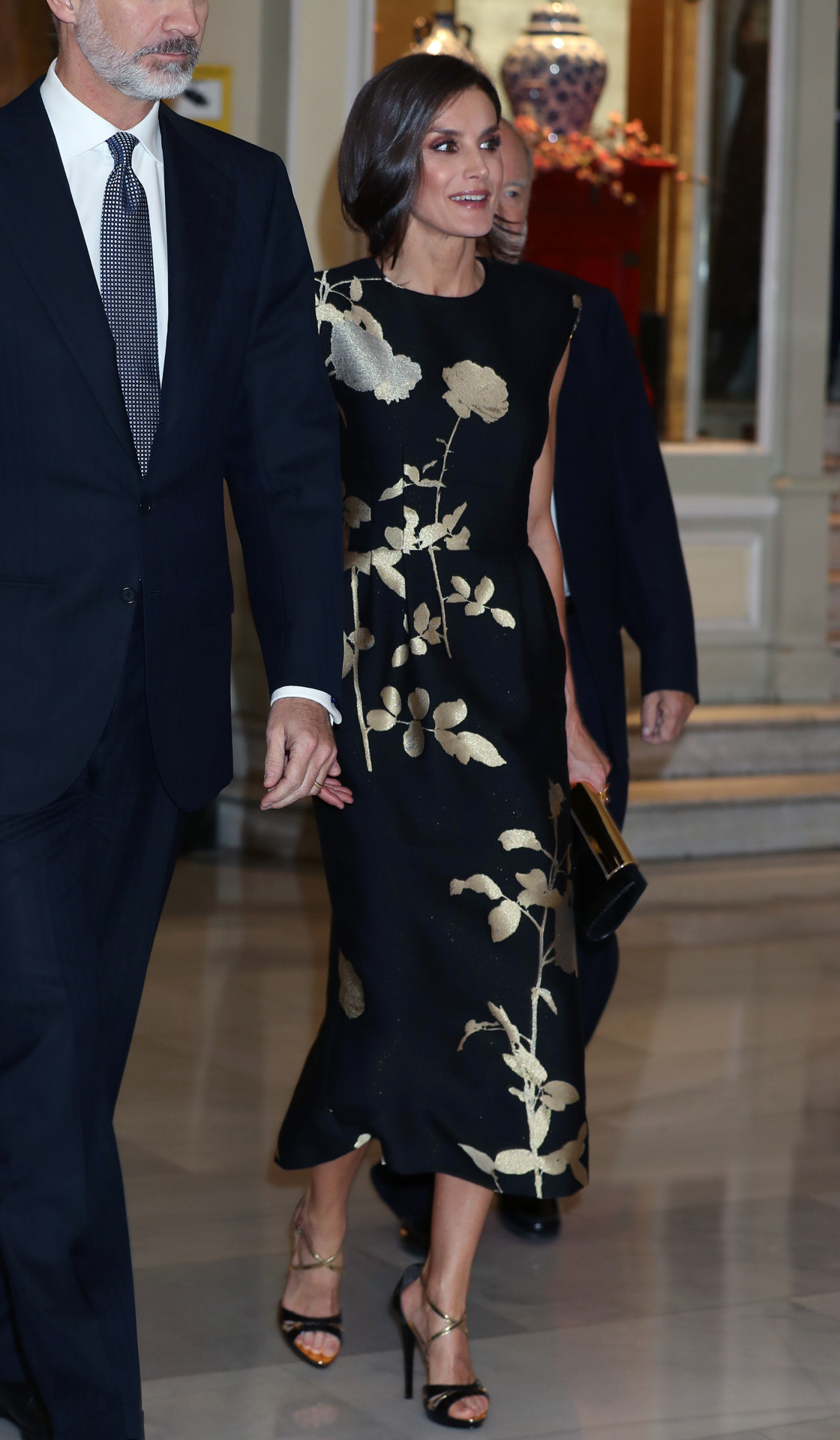 El vestido de estilo asiático de Dries Van Noten que usó en la ceremonia de 2019 es, quizás, uno de los más elegantes de su armario. Combinado exquisitamente con unas altísimas sandalias doradas de Manolo Blahnik y complementos al tono, otro de los puntos a destacar de su look fue el peinado, que recogió haciendo parecer un falso bob.